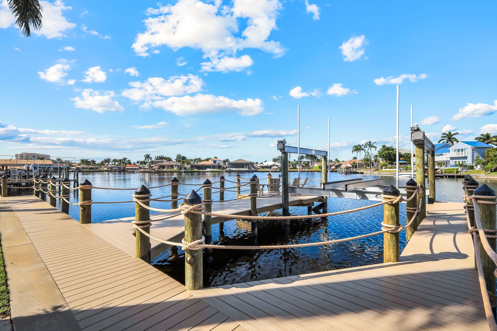 The huge dock expanding the entire property is available for fishing, docking your boat, and enjoying the beautiful views with a gentle breeze. It is exhilarating to see manatee or dolphins playing up close and personal.